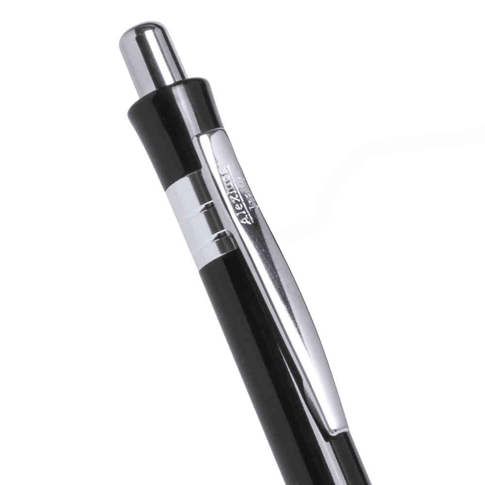 Esferográfica Alexluca com um elegante design de duas cores e um corpo liso com um acabamento brilhante em cores sólidas marcantes. Com acessórios em acabamento prateado brilhante e logótipo da marca no clip de metal. Com anel duplo a condizer, cartucho jumbo e tinta azul.