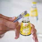 Porta-chaves em acrílico com formato retangualr que engloba um abre cápsulas.