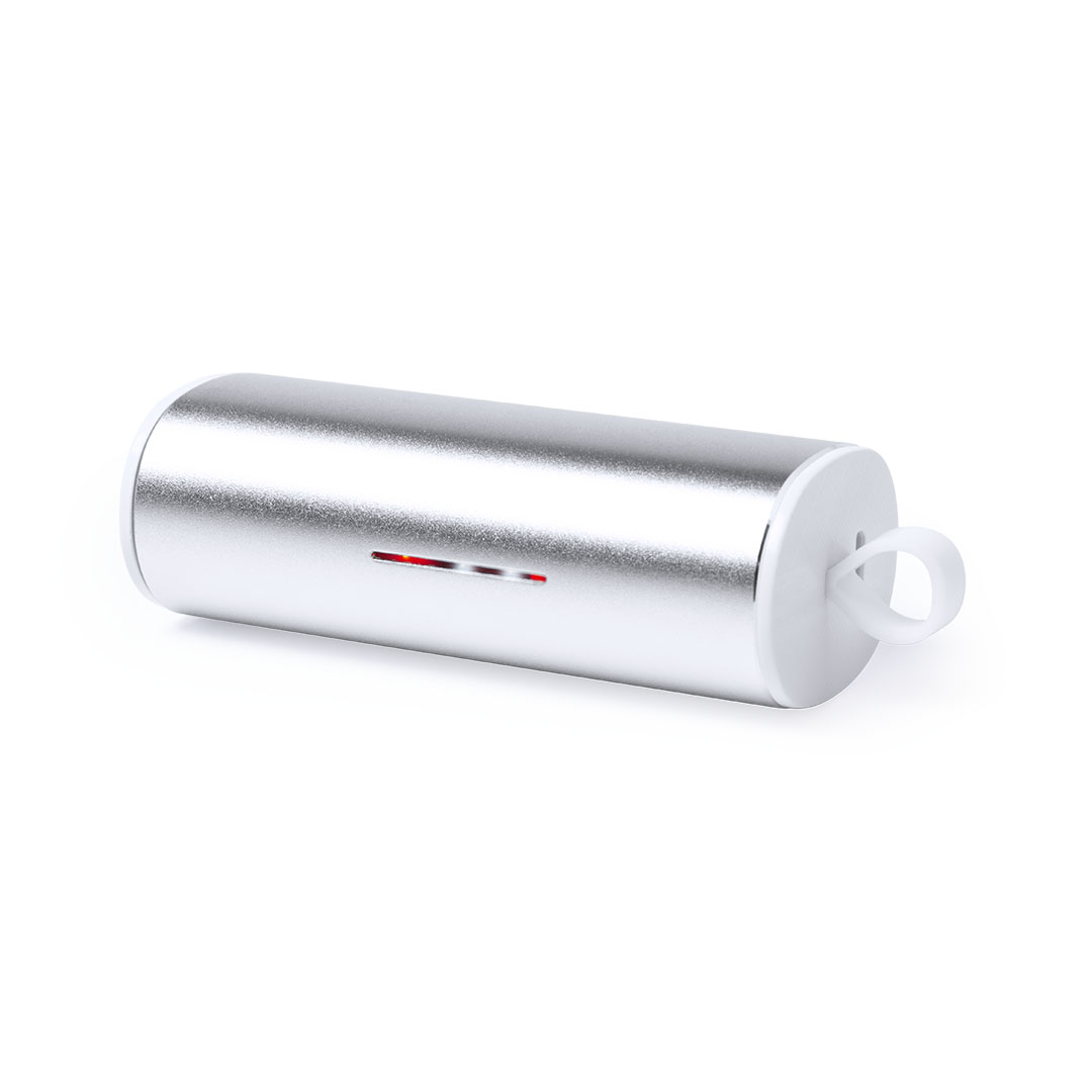 Auriculares com conexão Bluetooth®. Design ergonómico e minimalista em elegante esquema de cores prata e branco. Caixa de alumínio, com base de carregamento integrada, luz indicadora de status de carga e anel de transporte. Função viva-voz, recarregável via cabo USB - incluído - e apresentada em uma atraente caixa de design.