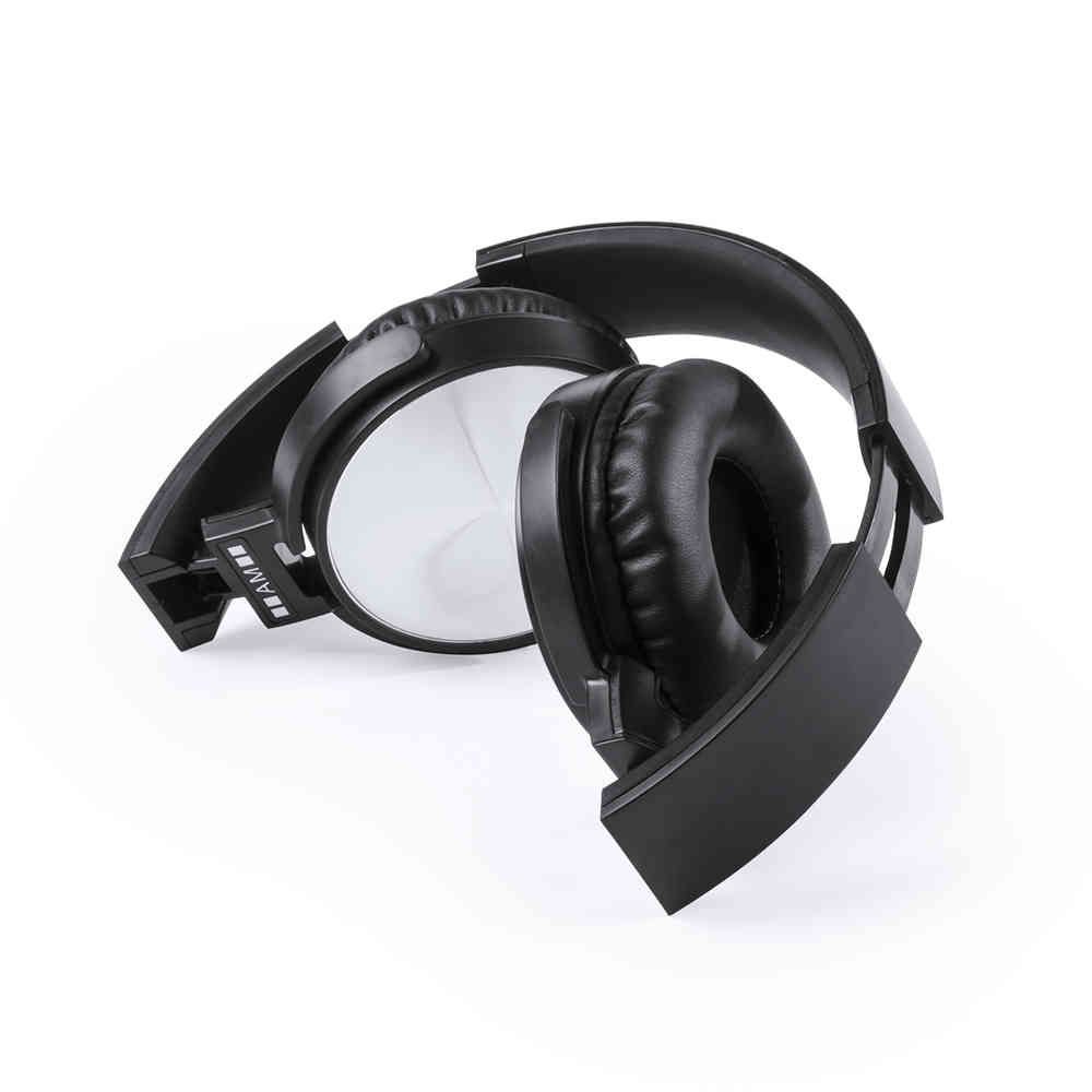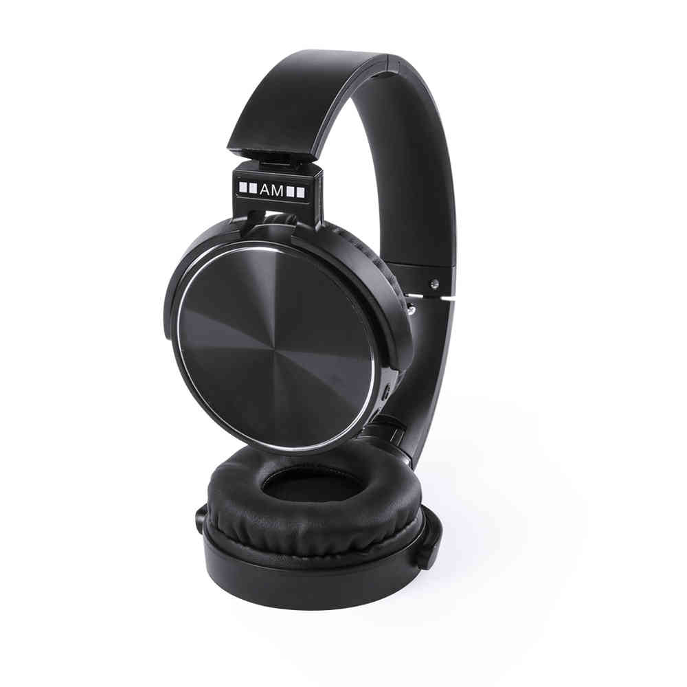 Auscultadores dobráveis com conexão Bluetooth® da Antonio Miró. Com um design minimalista sóbrio em preto / prata e com um painel de controle integrado no fone de ouvido. Com conexão Bluetooth® 3.0, rádio FM e função viva-voz. Almofadas de couro sintético e apresentadas em uma atraente caixa de design com o logótipo da marca.