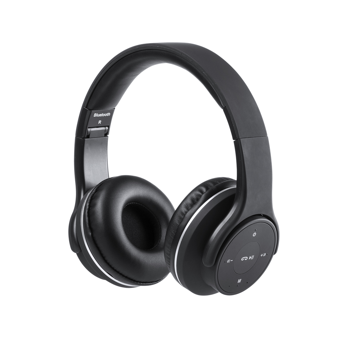 Auscultadores dobráveis com conexão Bluetooth® da Antonio Miró. Com um design minimalista sóbrio em preto / prata e com um painel de controle integrado no fone de ouvido. Com conexão Bluetooth® 3.0, rádio FM e função viva-voz. Almofadas de couro sintético e apresentadas em uma atraente caixa de design com o logótipo da marca.