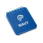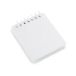 Bloco de notas espiral com 80 páginas lisas de papel reciclado e capa semi-rígida em PP.