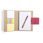 Bloco de notas 50 folhas. 30 Notas adesivas 7,3 x 7,5 cm. 75 Mini notas autocolantes 1,5 x 5 cm. Caneta de papelão reciclada incluída.