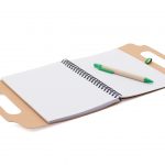 Bloco de notas 70 folhas. 25 Notas auto-adesivas 7,5 x 10 cm. 125 Mini notas autocolantes 1,5 x 7,5 cm. Caneta de papelão reciclada incluída.
