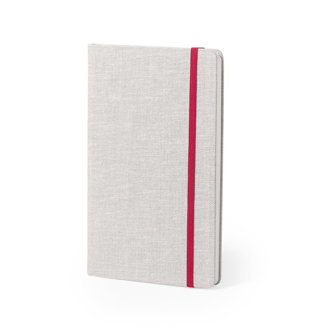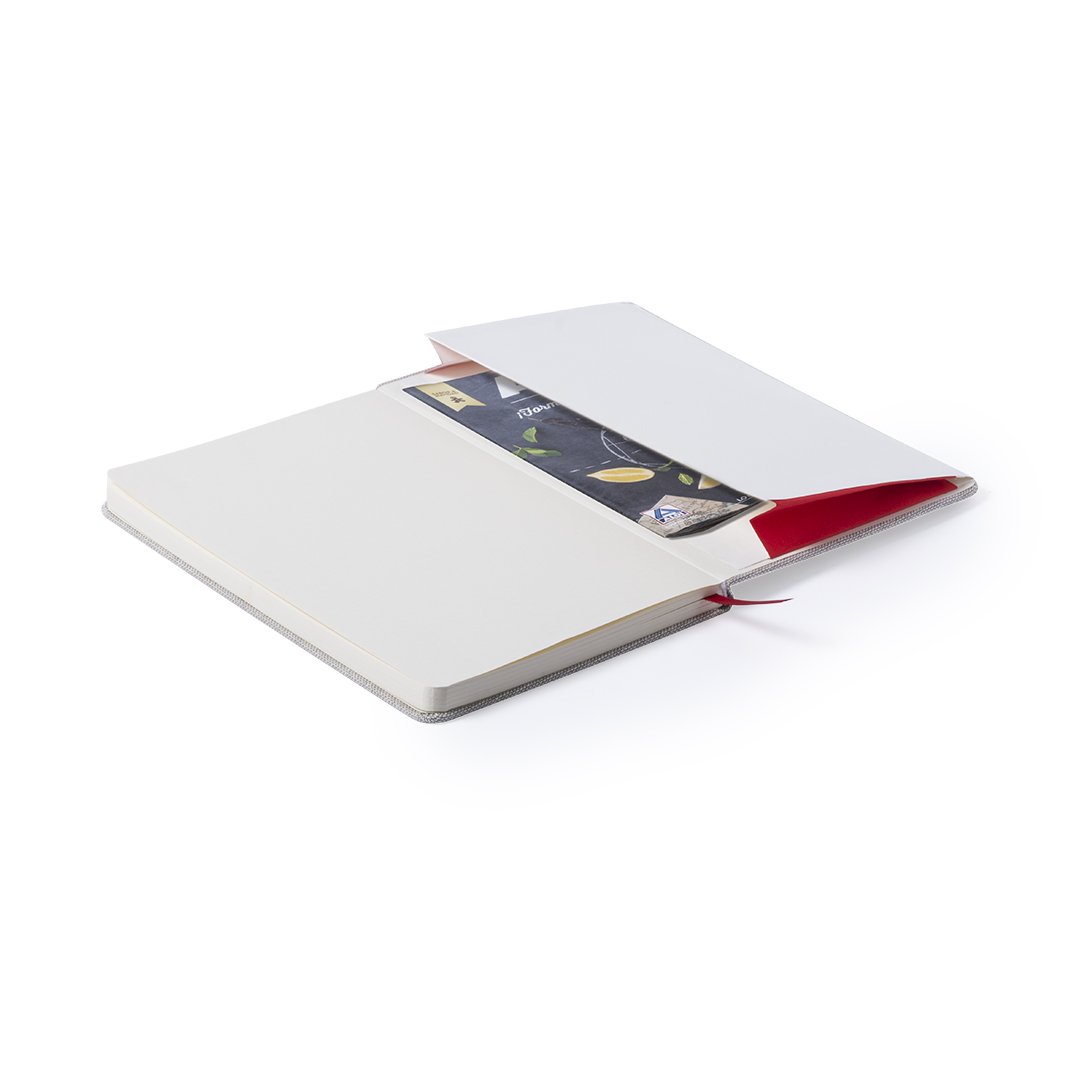 Bloco de notas com capas rígidas de toque suave, com uma elegante combinação de poliéster de dois tons. 98 folhas planas com lombada em cores divertidas, compartimento interior, fixação elástica e marcadores de tecido correspondentes.