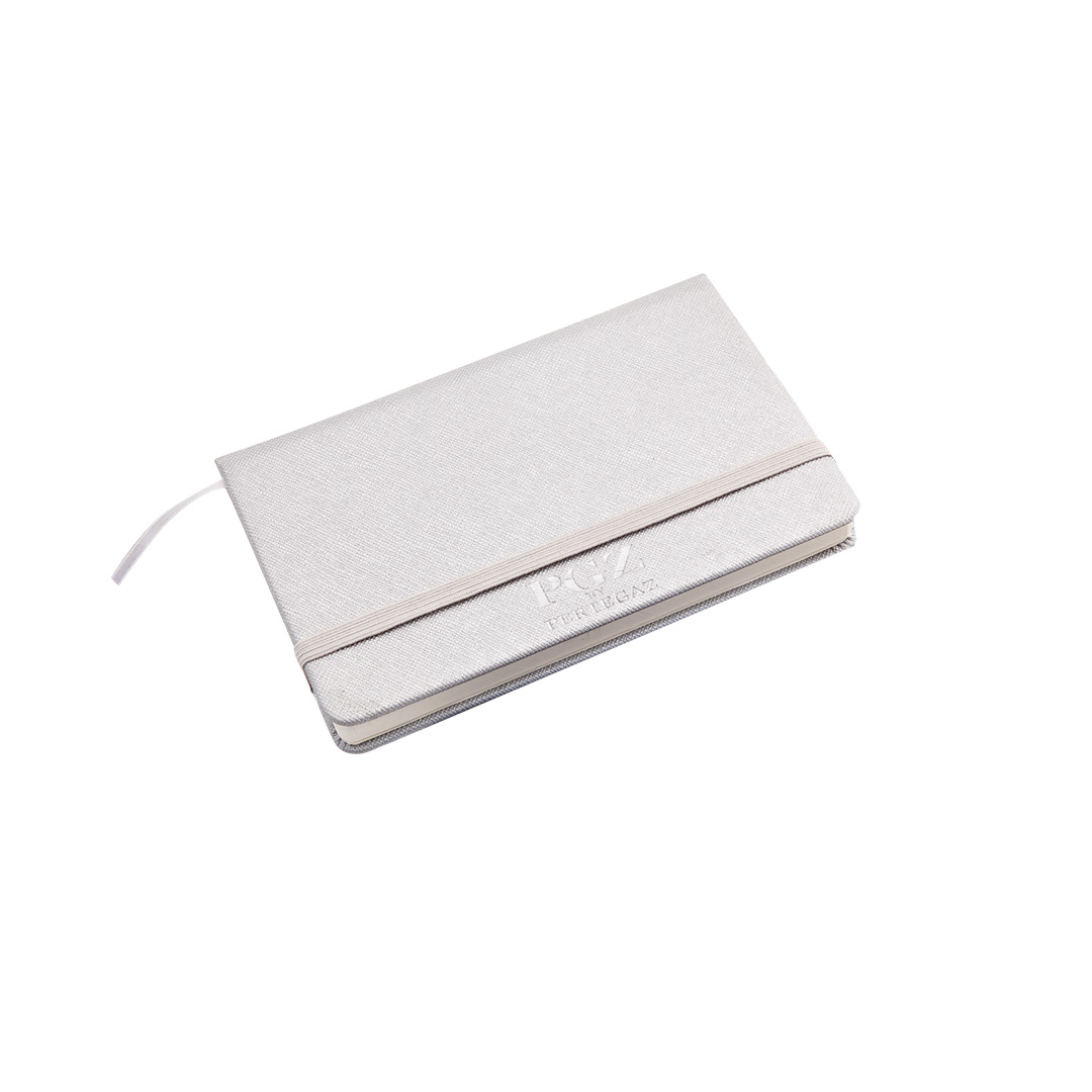 Bloco de notas Pertegaz com capas de toque suave e elegante acabamento em couro. 80 folhas lisas, com suporte elástico e marcadores de tecido correspondentes. Logótipo da marca gravado na capa.