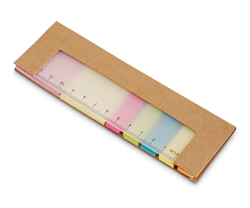 Bloco de notas adesivas com 7 conjuntos (25 folhas cada um dos conjuntos) e com régua de 12 cm (escala impressa).