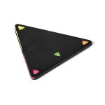 Bloco de notas adesivas triangular com 4 conjuntos (25 folhas cada um dos conjuntos) e com capa em cartão.