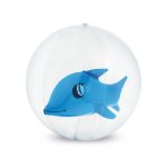 Bola insuflável em PVC transparente com boneco insuflável no interior.