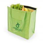 Bolsa térmica em non-woven (80 g/m²) com fecho em velcro e com bolso frontal. A bolsa tem capacidade até 10 L.