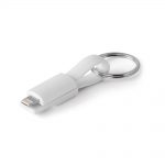 Cabo USB com conetor 2 em 1. Cabo em ABS e PVC, adequado para carregar dispositivos móveis. Compatível com entradas micro USB e sistema operativo iOS. O cabo personalizável contém uma argola porta-chaves.