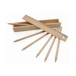 Conjunto de 6 lápis em estojo de madeira natural. Lápis de madeira, com corpo redondo de acabamento natural e numa ampla gama de tons. Tampa antiderrapante com régua de 20cm.