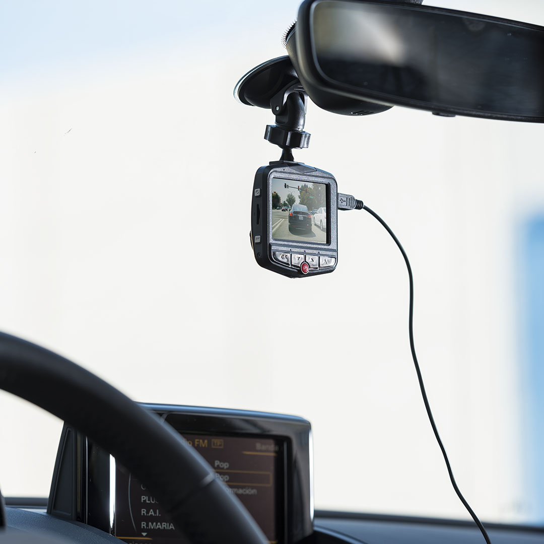 Câmera de lua de carro, captura de vídeo e foto HD 1080p HD compacta e robusta de alta qualidade, especialmente projetada para uso intensivo. Com ventosa de fixação e lente grande angular de 130º. Alcance de detecção de movimento de até 4m, função de visão noturna, função de estacionamento, microfone, cabo do carregador de carro de 3m e conectividade HDMI. Ele integra uma tela LCD de 2,4 polegadas com um sistema multilingue e um slot para cartões micro SD de até 32GB de capacidade. Recarregável via carregador USB e cabo sincronizador - incluídos.