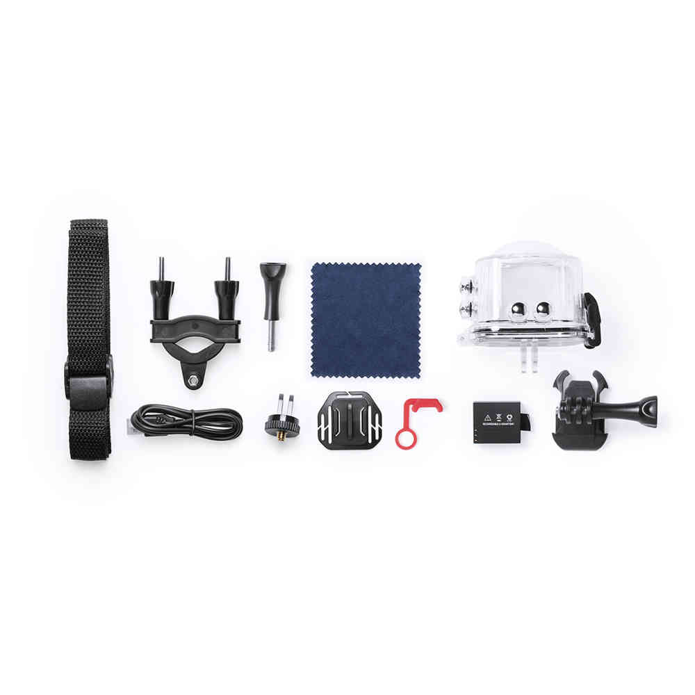 Câmera desportiva de 360 ° com captura de vídeo HD de 2448p de alta qualidade, design compacto e resistente, especialmente projetado para uso intensivo. Inclui caixa submersível e uma infinidade de acessórios para o capacete, guidão ou cintos, além de tiras ajustáveis na cabeça e no tronco. A versatilidade e resistência desta câmera desportiva tornam o dispositivo perfeito para capturar, com qualidade excepcional, qualquer atividade desportiva ou de lazer em 360 °. Com função Wi-fi, câmera Full HD 1080p, slot para cartão micro USB com capacidade de até 64 GB, tela LCD de 0,96 polegadas, sistema multilíngua e recarregável via mini cabo USB incluído. Apresentado em uma atraente caixa de design.