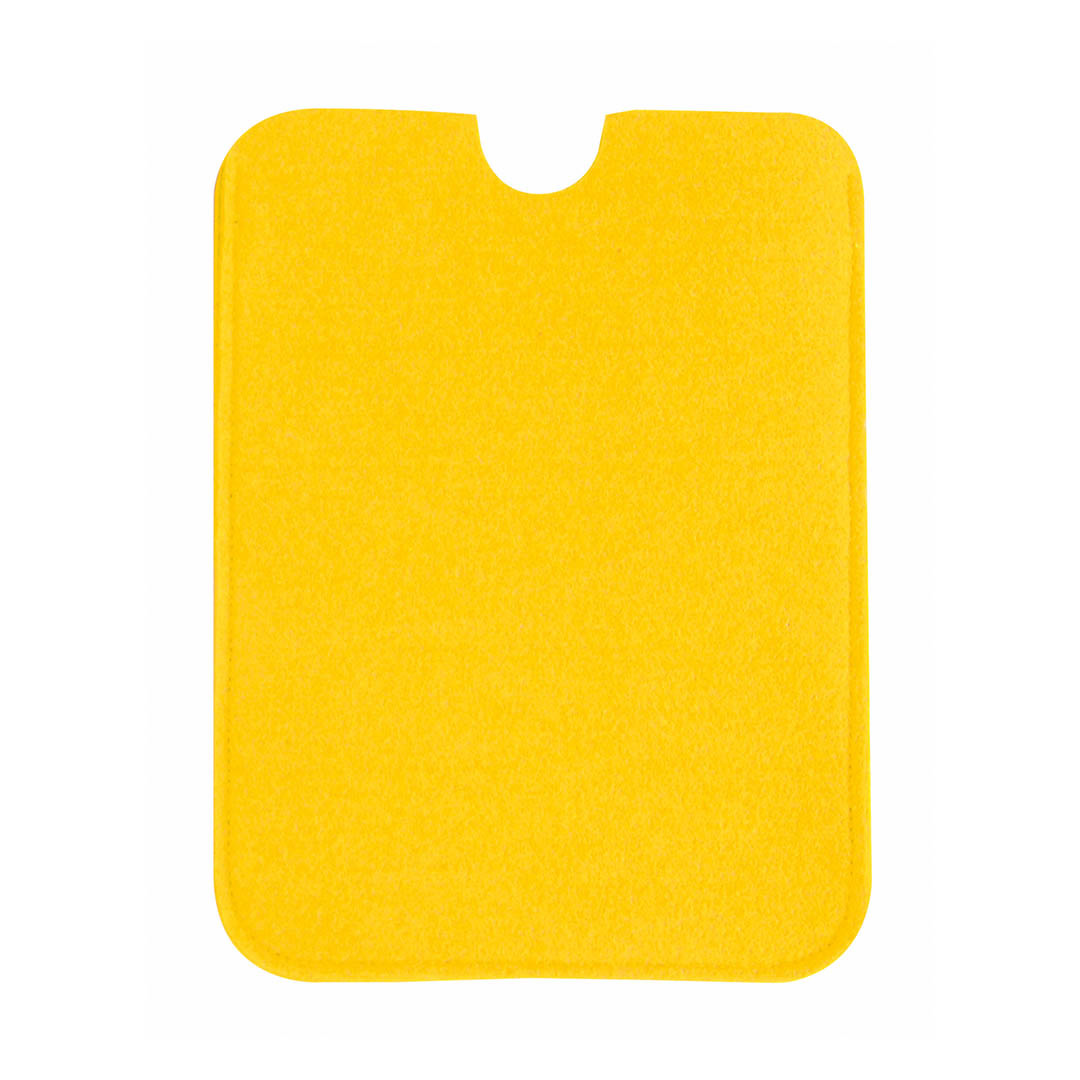 Capa de feltro macio para tablets até 10 polegadas. Em cores sóbrias, fechamento elástico com acessório de ajuste. Dupla função de pano de limpeza de capa e tela.
