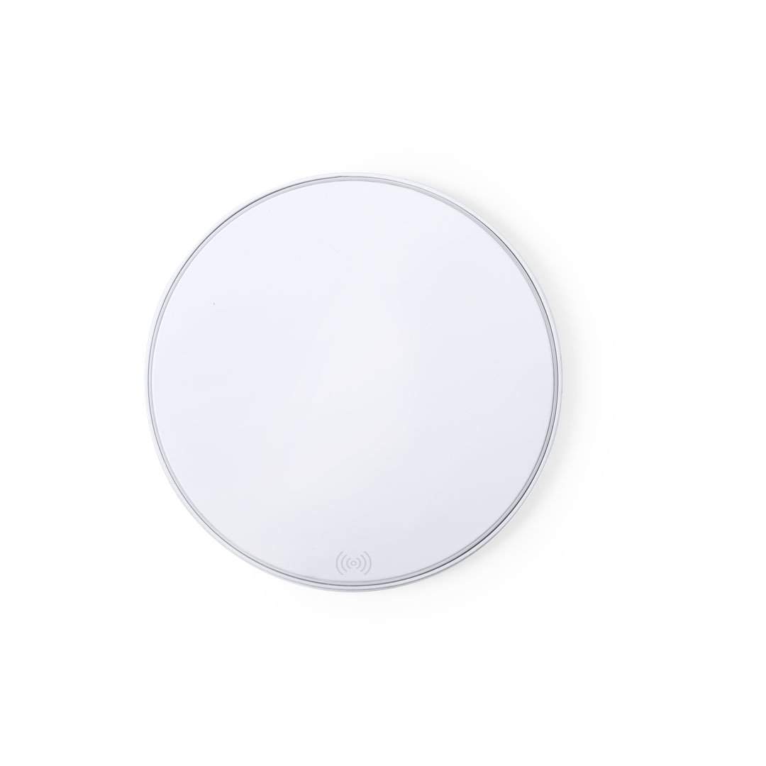 Carregador sem fio circular com base antiderrapante. Indicador LED de status de carregamento, com cabo micro USB incluído e compatível com smartphones com tecnologia de carregamento sem fio. Apresentado em uma atraente caixa de design.