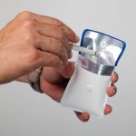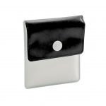 Cinzeiro de bolso em branco e aba em tons brilhantes com fecho de botão. Alumínio à prova de fogo no interior.