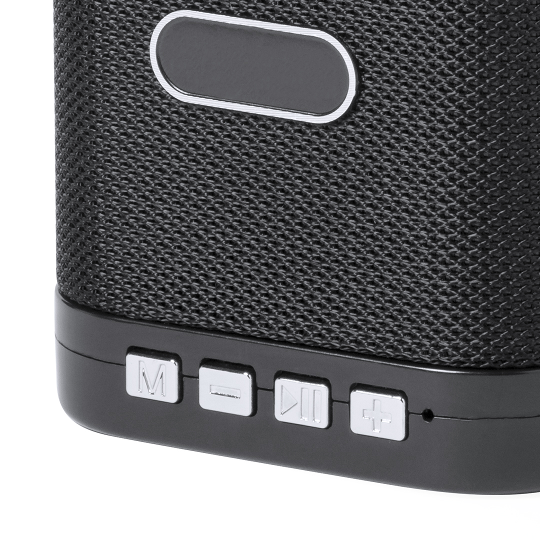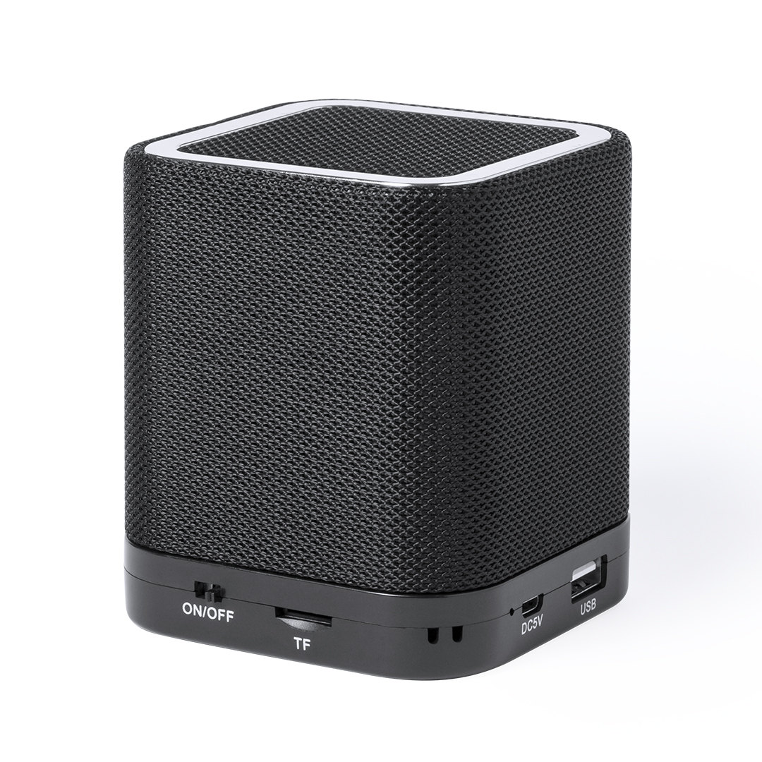 Altifalante de conexão compacto Bluetooth® com elegante acabamento em preto com acessórios prateados. Oferece 3W de potência, possui uma função viva-voz, um slot para cartões micro SD de até 32 GB de capacidade e entrada de linha auxiliar através de uma conexão de 3,5 mm. Compatível com iOS e Android, inclui um mini cabo de carregamento USB, cabo auxiliar de 3,5 mm e é apresentado em uma atraente caixa de design. Com suportes de borracha antiderrapante na base.