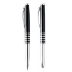 Conjunto de esferográfica e roller de aço inoxidável em estojo de oferta.