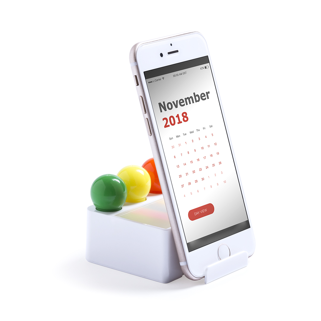 Conjunto de Marcadores com Suporte Smartphone integrado na base. Com um design minimalista em branco, inclui 3 marcadores fluorescentes com um design original e 100 mini notas auto-adesivas numa variedade de cores. Apresentado em caixa individual.