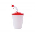 Copo de PP de 380ml de capacidade com corpo em cor branco e acessórios em variada gama de cores.