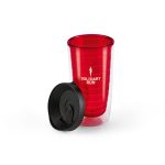 Copo de viagem. PP. Com corpo duplo e tampa. Capacidade até 450 ml.