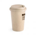 Copo de viagem. Fibra de bambu e PP. Com tampa. Capacidade até 450 ml.