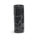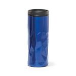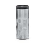 Copo de viagem. Aço inoxidável e PP. Com corpo duplo, tampa e antideslizante na base. Capacidade até 520 ml.