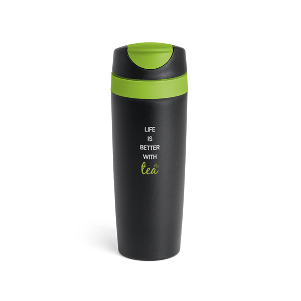 Copo de viagem. PP. Com corpo duplo e tampa. Capacidade até 510 ml.