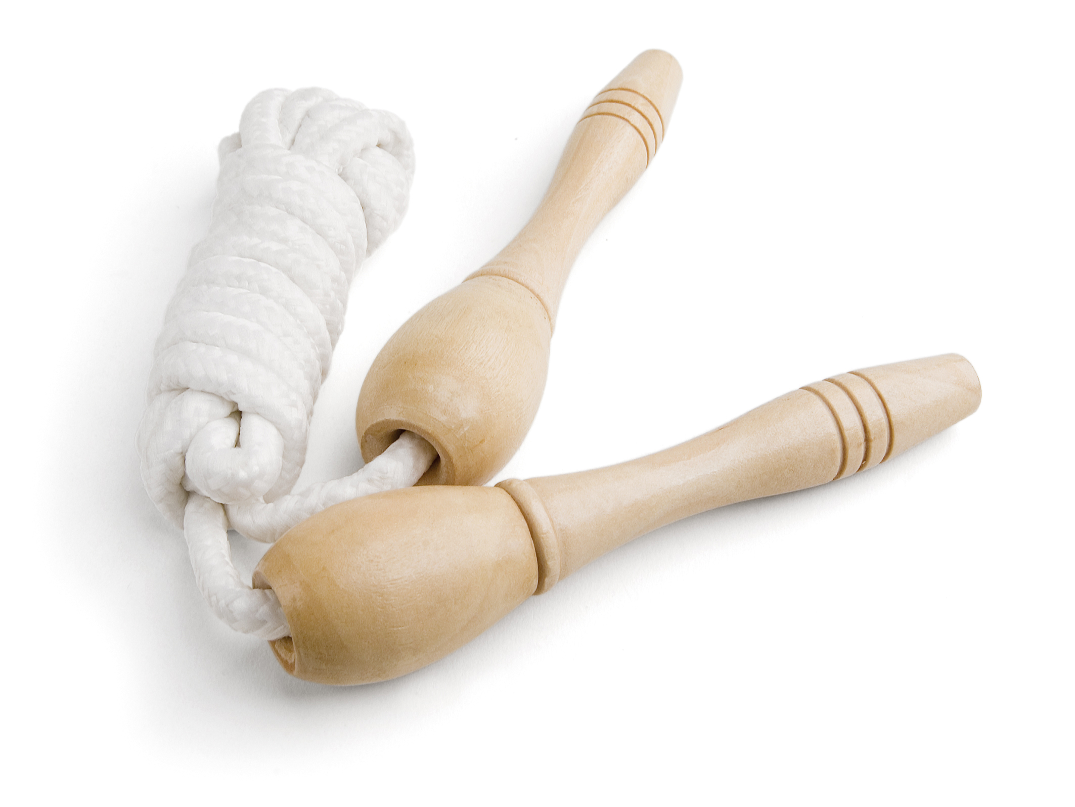 Corda de saltar em madeira ideal para brincar ao ar livre.
