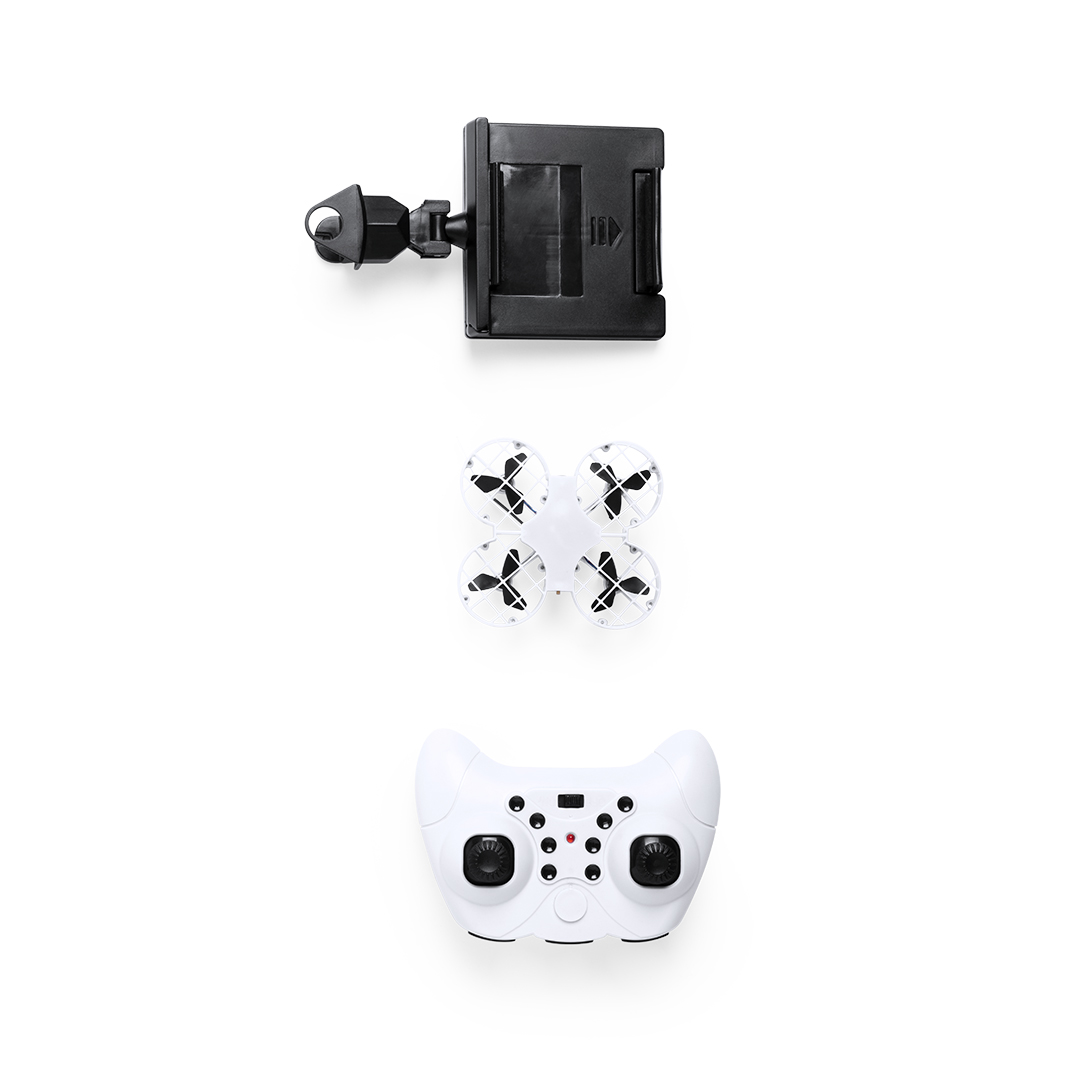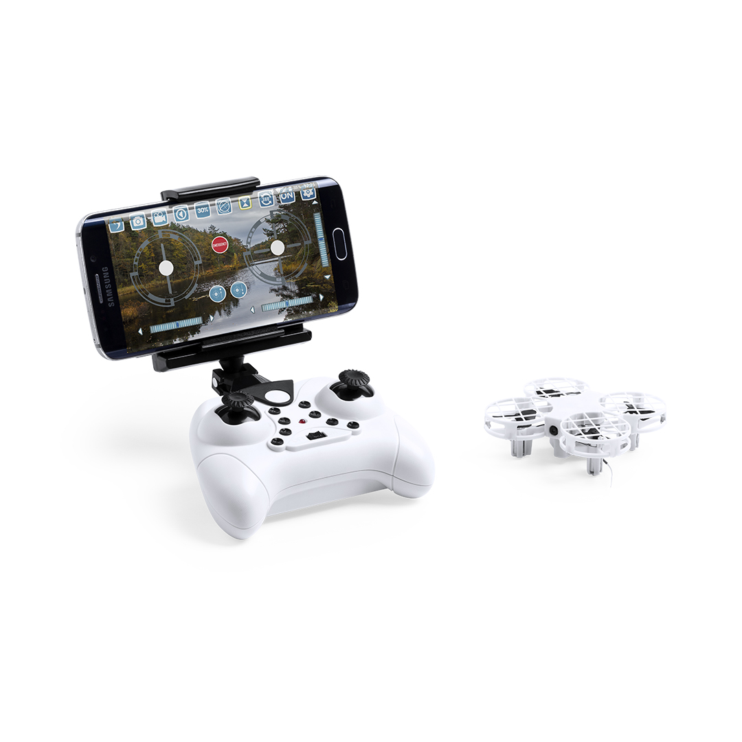 Drone de tamanho compacto em material ABS resistente. Com conectividade Wi-Fi, modo de gravação de vídeo e captura de fotos. Gerenciamento de drones a partir de dispositivos móveis - iOS e Android compatíveis com APP - ou por controle remoto - incluído -. Com o modo de voo automático - auto pairar - que deixa o drone suspenso no ar. Drone recarregável via cabo USB, com cabo Micro USB incluído e controle remoto com bateria -3xAAA não incluída. Inclui 2 hélices de substituição e chave de fenda, com manual de instruções detalhado. Apresentado em uma atraente caixa de design.