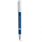 Esferográfica com clipe de metal e acabamento metalizado.