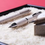Esferográfica Nature line com corpo de materiais reciclados, em combinação de palha de trigo e PP. Design minimalista, com mecanismo de flexão e clipe com uma ampla área de impressão. Tinta azul.