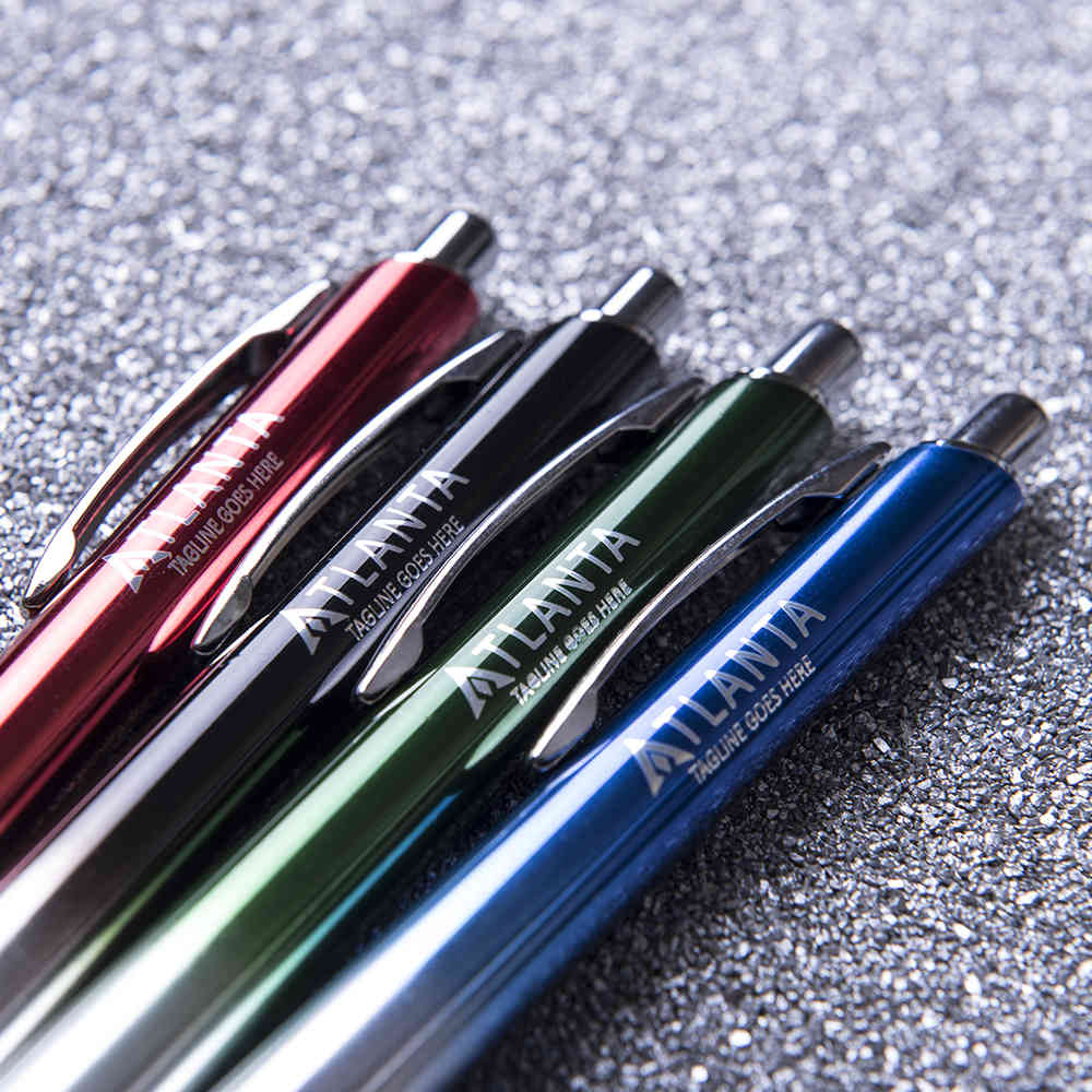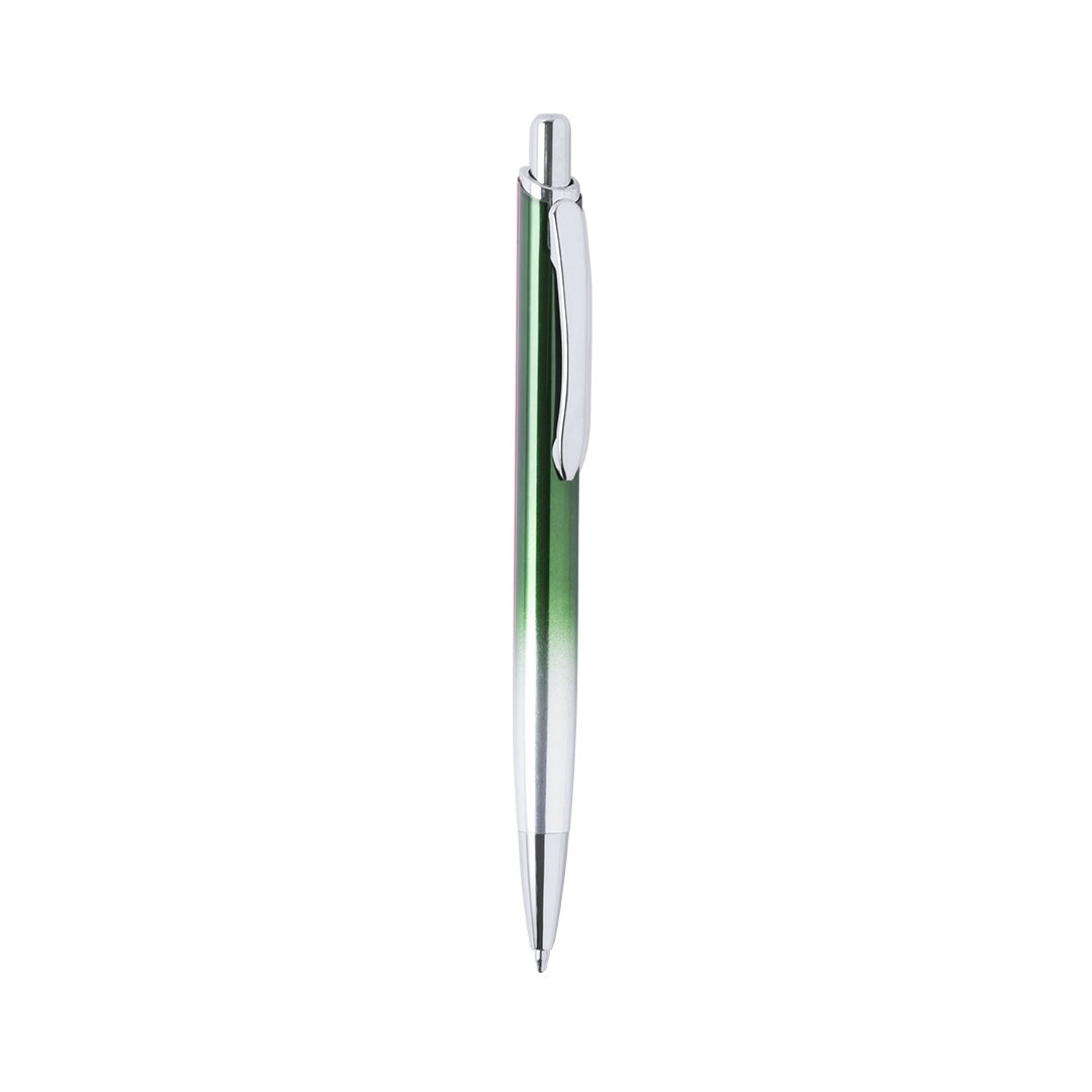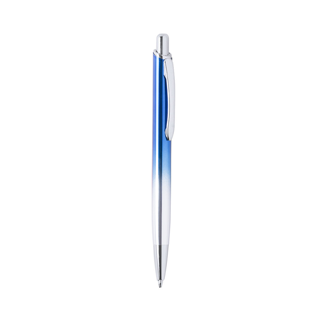 Esferográfica de alumínio metálico com mecanismo de botão de pressão e detalhes em prata. Corpo numa combinação de cores com tons de prata brilhantes. Especialmente projetado para marcação a laser e com um revestimento externo especial para que sua publicidade seja gravada perfeitamente em prata brilhante, combinando com o restante dos acessórios da caneta. Tinta azul.