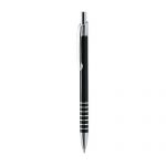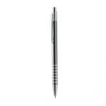 Esferográfica de metal, 7 anéis. Escrita preta, sistema pulsar. Clip e detalhes prateados.