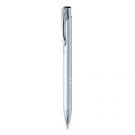 Esferográfica de metal, 2 anéis. Escrita preta, sistema pulsar. Clip e detalhes prateados.
