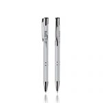 Esferográfica de plástico, clip de metal. Escrita preta, sistema pulsar. Clip em metal prateado.