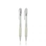 Esferográfica de plástico, pega ergonómica. Escrita preta, sistema pulsar.