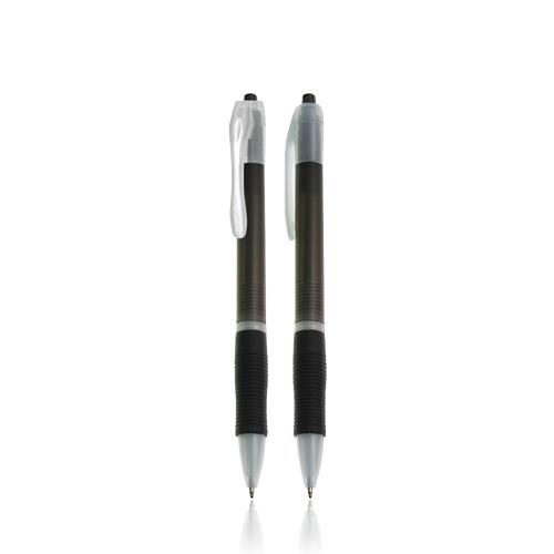 Esferográfica de plástico, pega ergonómica. Escrita preta, sistema pulsar.
