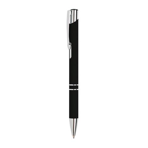 Esferográfica em alumínio, corpo com toque de borracha com 2 anéis. Escrita preta, sistema pulsar. Esferográfica com uma vasta gama de cores.
