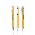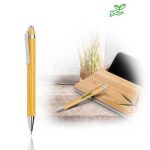 Esferográfica em bamboo com clip metálico. Escrita preta e sistema pulsar. Uma esferográfica elegante, ideal para personalização.