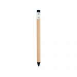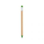 Esferográfica de cartão reciclado, em formato lápis com pequenos apontamentos coloridos de plástico. Escrita preta com sistema pulsar.