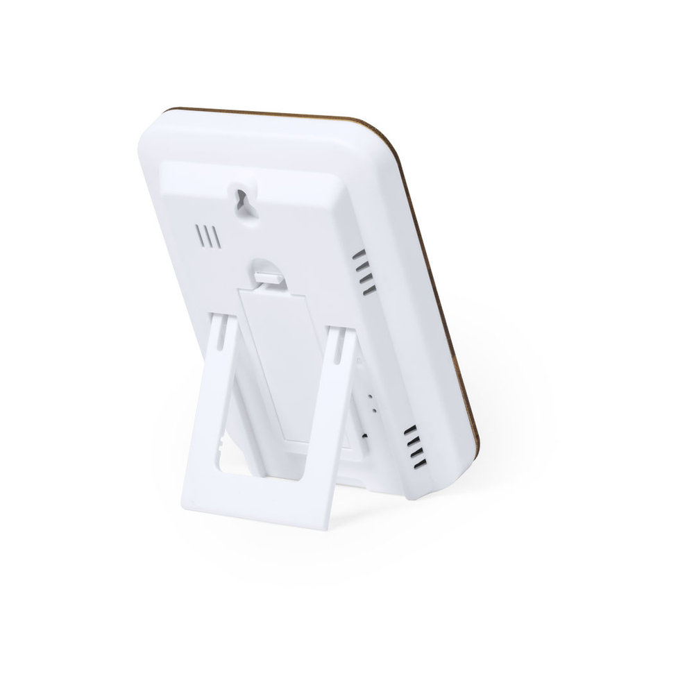 Estação meteorológica de linha nature com frente de bambu. Funções higrómetro e termómetro. Alimentado por baterias (2xAAA não incluídas) e apresentado em uma atraente caixa de design ecológico.