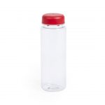 Garrafa de água de 500ml de capacidade em transparente.