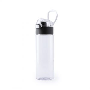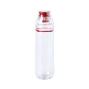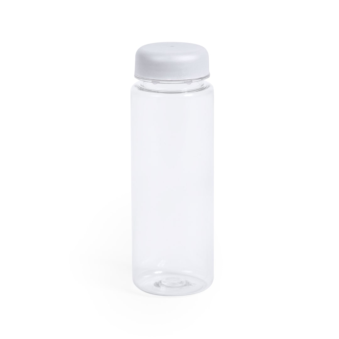 Garrafa de água de 500ml de capacidade em transparente.