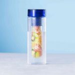 Garrafa de 700ml de capacidade em Tritan de alta resistência ao calor (70ºC) e livre de BPA. Com tampa de rosca segura em cores vivas e acessório refrigerador.