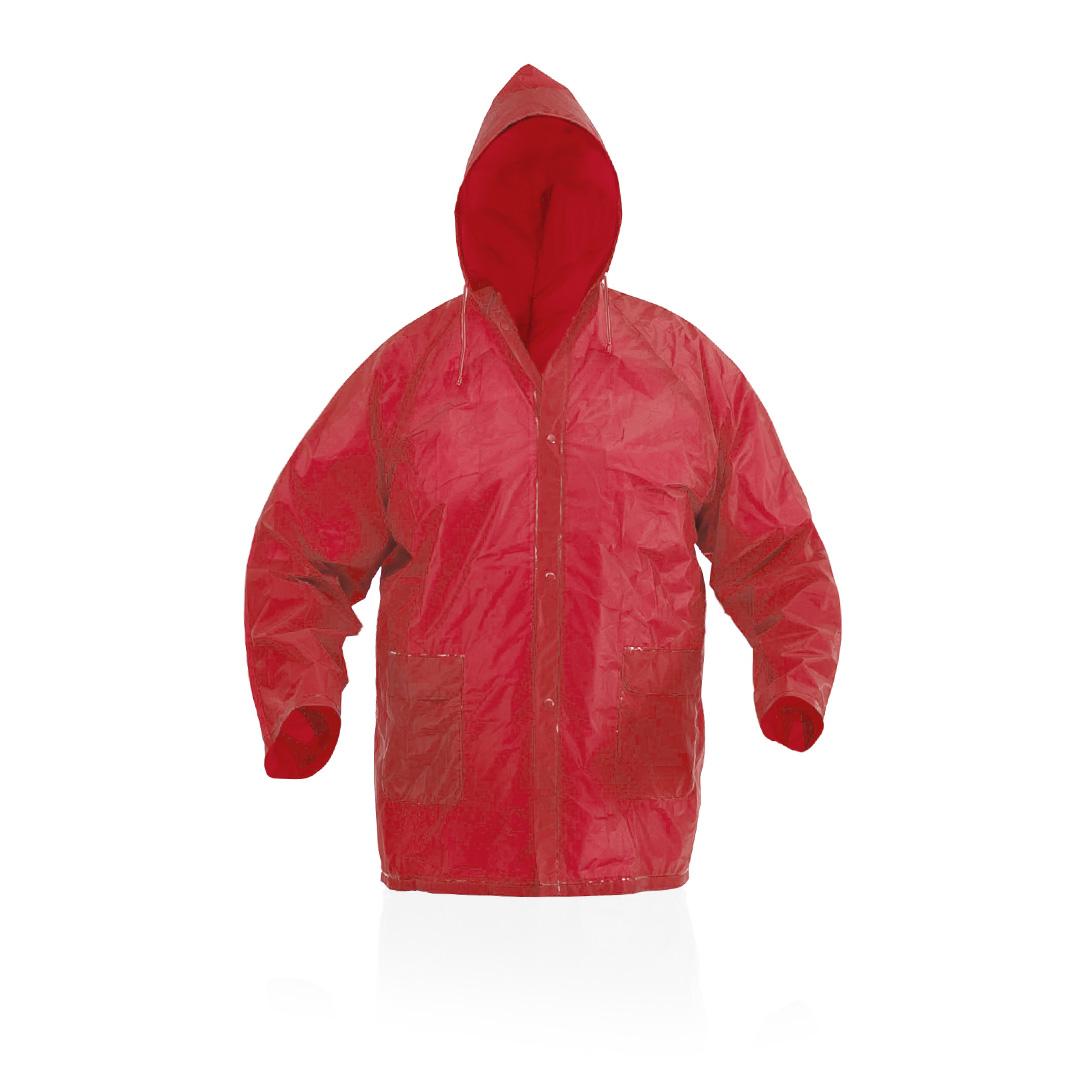 Impermeável em EVA resistente, de acabamento termo selado numa vasta gama de cores. Capuz com cordão de ajuste, fecho principal com molas e bolsos laterais tapados. Tamanho único para adulto.