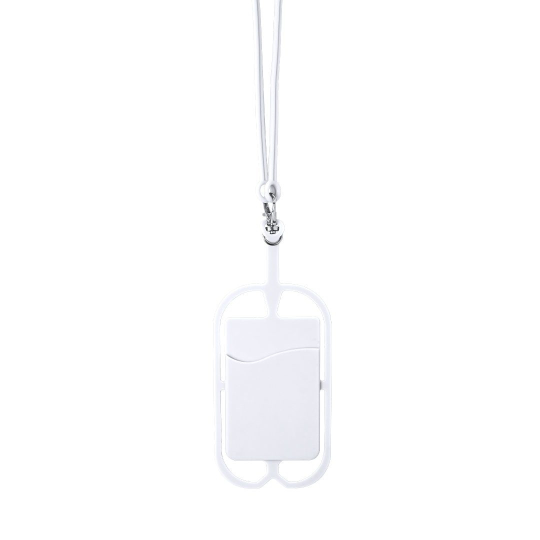 Lanyard de silicone prático e confortável em cores fortes, com suporte para smartphone integrado e bolso para cartão. Com acessório de ajuste e fecho mosquetão.
