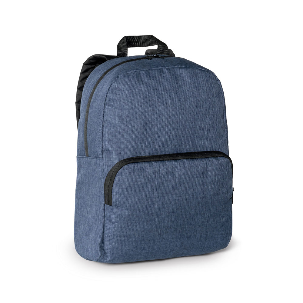 Mochila para computador em 600D de alta densidade. Compartimento principal com divisória almofadada para computador até 14". A mochila tem bolso frontal com fecho. Parte posterior e alças são almofadadas.