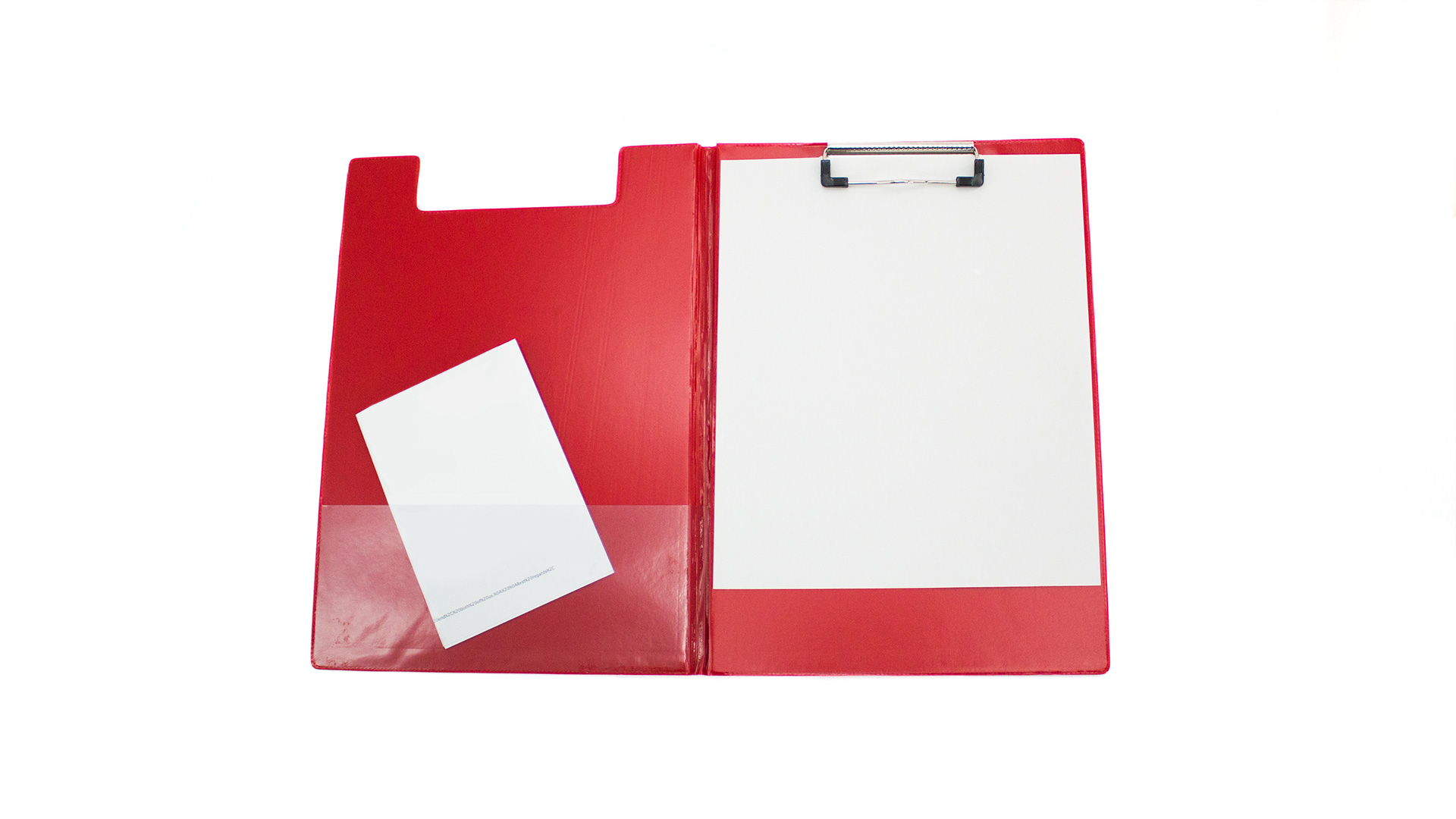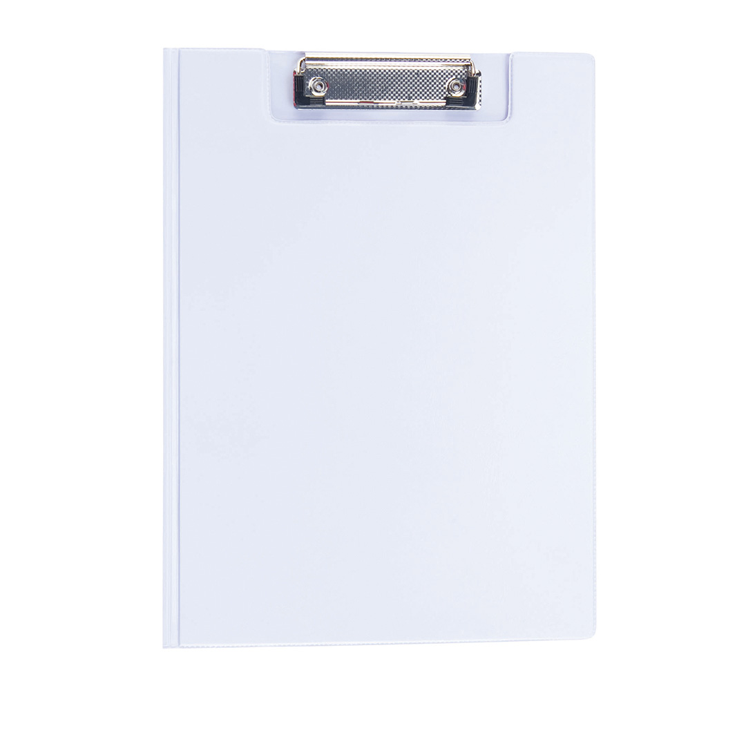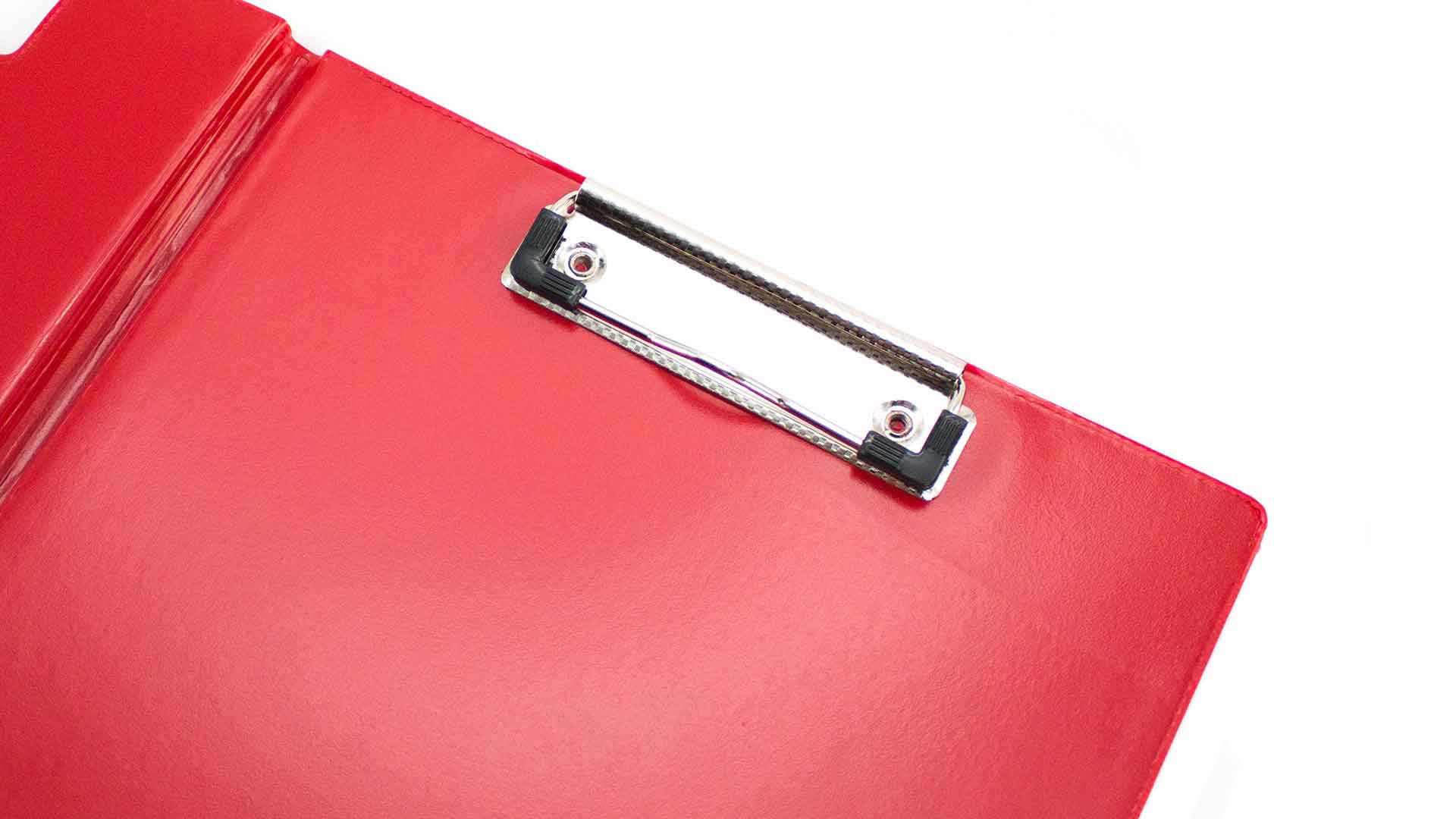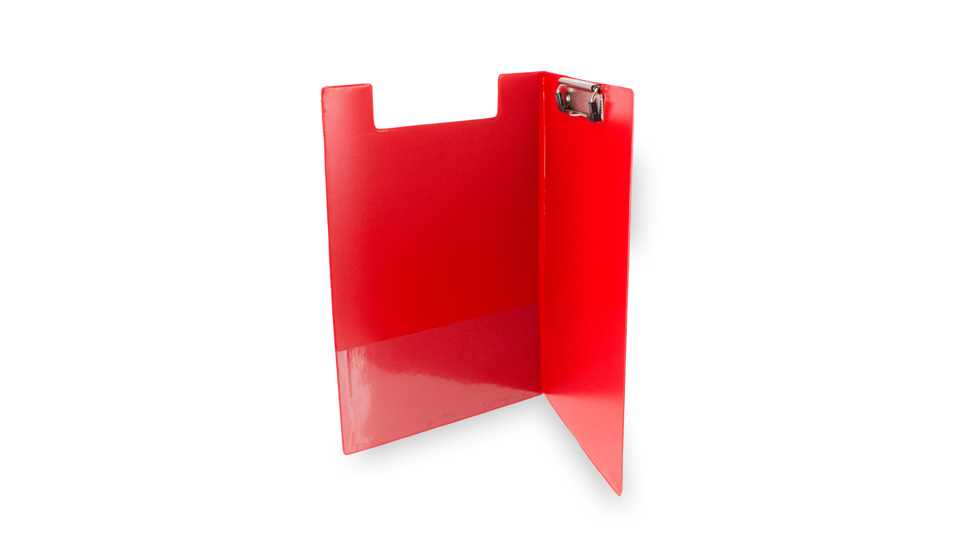 Pasta em Prancheta de clipes clássica em várias cores e com acabamento em PVC macio. Com bolso interno com aba transparente em PVC resistente.